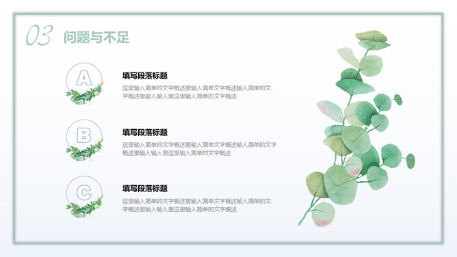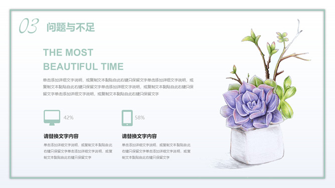淡雅清新水彩多肉绿植PPT模板abby12个月前发布关注私信026608淡雅清新水彩多肉绿植PPT模板此内容为付费资源,请付费后查看¥3黄金会员免费钻石会员免费登录购买付费资源已售 253淡雅清新水彩多肉绿植PPT模板。一套绿色植物主题幻灯片模板,水彩清新多肉素材装饰,淡雅配色,适合多种用途。© 版权声明文章版权归作者所有,未经允许请勿转载。THE ENDPPT模版喜欢就支持一下吧点赞8 分享QQ空间微博QQ好友海报分享复制链接收藏